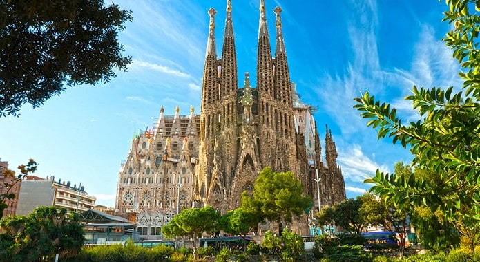 La Sagrada FamÃlia in Barcelona, the visionary masterpiece of architect Antoni GaudÃ, is a stunning example of modernist architecture.