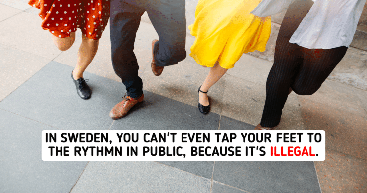 This might be the saddest and strangest law ever. Sweden has prohibited people from dancing in public without special permission. On the other hand, even reacting spontaneously to music in public by tapping your feet is illegal.