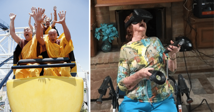 Buddhists are all for peace and happiness! These monks had their happiest day ever on the roller coaster!