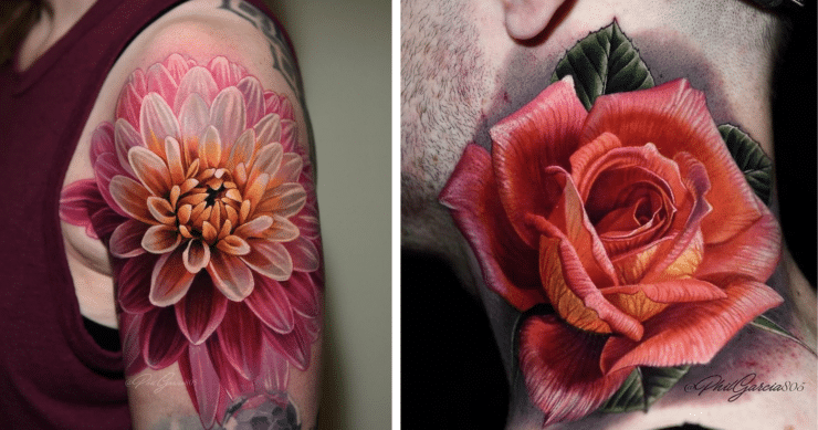 To this day, Phil Garcia is a demanded tattooist with a unique style, such as 3D tattoos. Most part of his work includes flowers and roses, which according to Inkppl magazine, are “world-famous“.