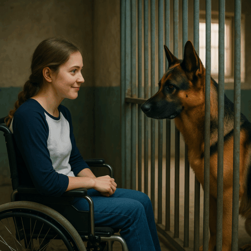 In the weeks that followed, neighbors were astonished to see the once “hopeless” German Shepherd walking calmly beside a young woman in a wheelchair, his eyes bright, his stride proud.