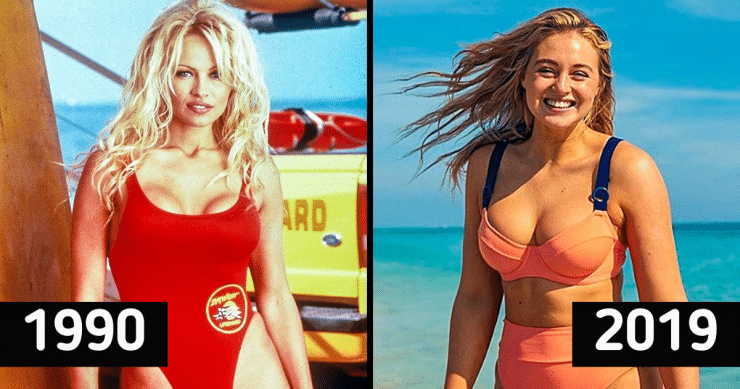 Pamela Anderson from the Baywatch Tv show amazed everyone with her red full-body swimsuit running in slow motion through the beach. This affected the public, so the Baywatch swimsuits became popular fast.
