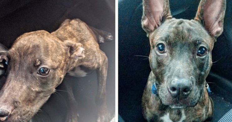 14. “Meet Cooper the Trooper! Top is his first car ride home after being dumped and contracting Parvo. He was given a 20% chance to survive. Bottom is the big boy celebrating his first birthday!”