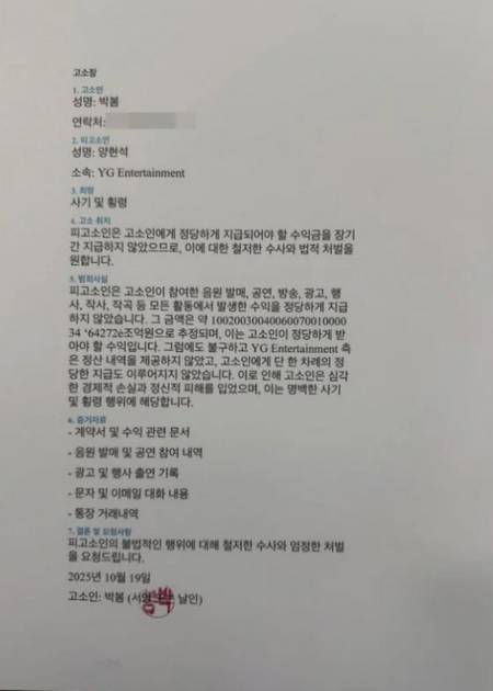 Bom, once a central member of the world-renowned group 2NE1, had shared what appeared to be details of a legal complaint on social media earlier this week. The post seemed to indicate that the lawsuit was directed at Yang Hyun-suk, the founder of YG Entertainment.