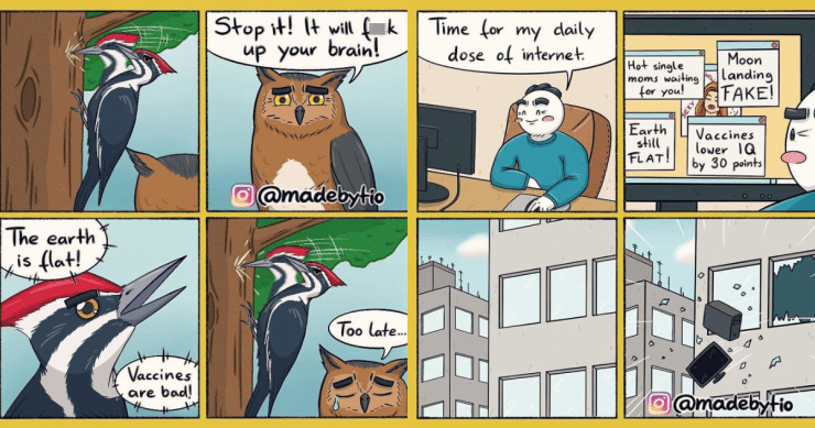 Dark comics by Illustrator MadeByTio bring to light the absurdity of the world. Adding a touch of humour to controversial issues, MadeByTio uses a four-panel style to showcase a range of daily life situations with a dark twist. His dark comics represent the world’s anguish and injustice that we often overlook.
