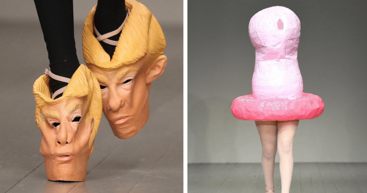 In this collection, you will find models walking the show in Donald Trump’s head shoes, or pool dresses that don’t make any sense. I mean… Fashion shows are all about going ‘boom’ but these designers seem to have gone too far.