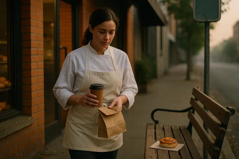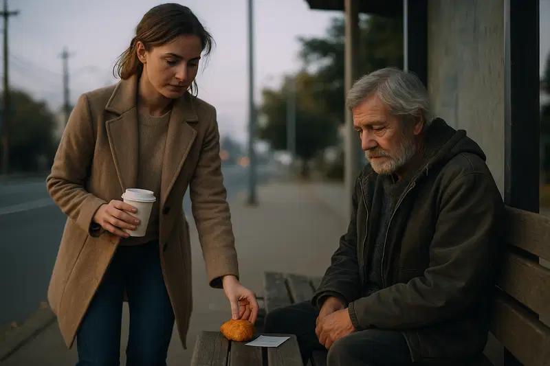 Before the city awoke and the bakery unlocked its doors, Claire would wrap a warm cinnamon bun, pour a steaming cup of black coffee, and slip out the side entrance. She’d walk two blocks to a worn wooden bench by a faded bus stop, leaving the breakfast there with a folded napkin that read: “Wishing you a peaceful morning.”