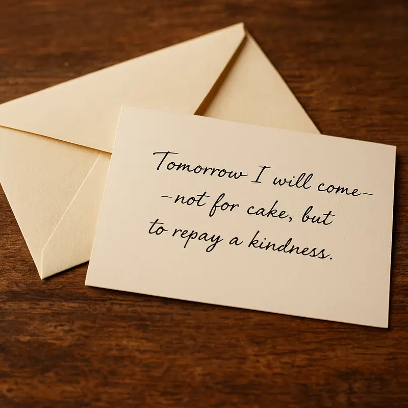“Tomorrow I will come—not for cake, but to repay a kindness.”