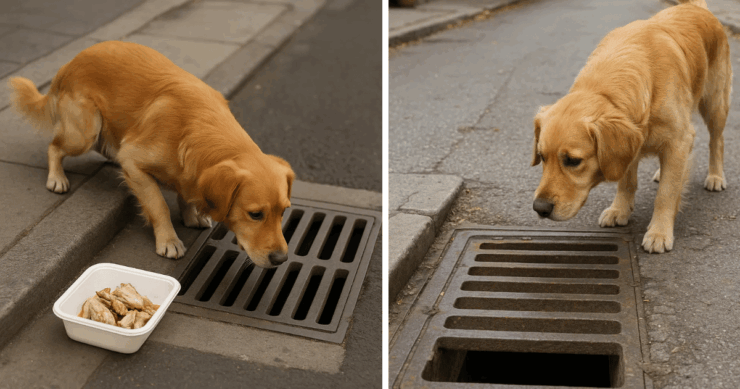 Every morning in the quiet town of Meadowbrook, something unusual made people pause. A golden retriever with soft eyes and a calm nature would walk along Maple Street. His destination was always the same. He would stop at a storm drain near the corner café, lower his head, and stare into the shadows below.