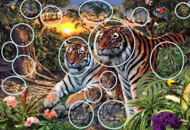 For those who manage to uncover all 17 dolphins, a new jungle-themed puzzle raises the stakes. What initially looks like a tranquil scene featuring a few tigers resting in dense greenery turns out to be far more complex.