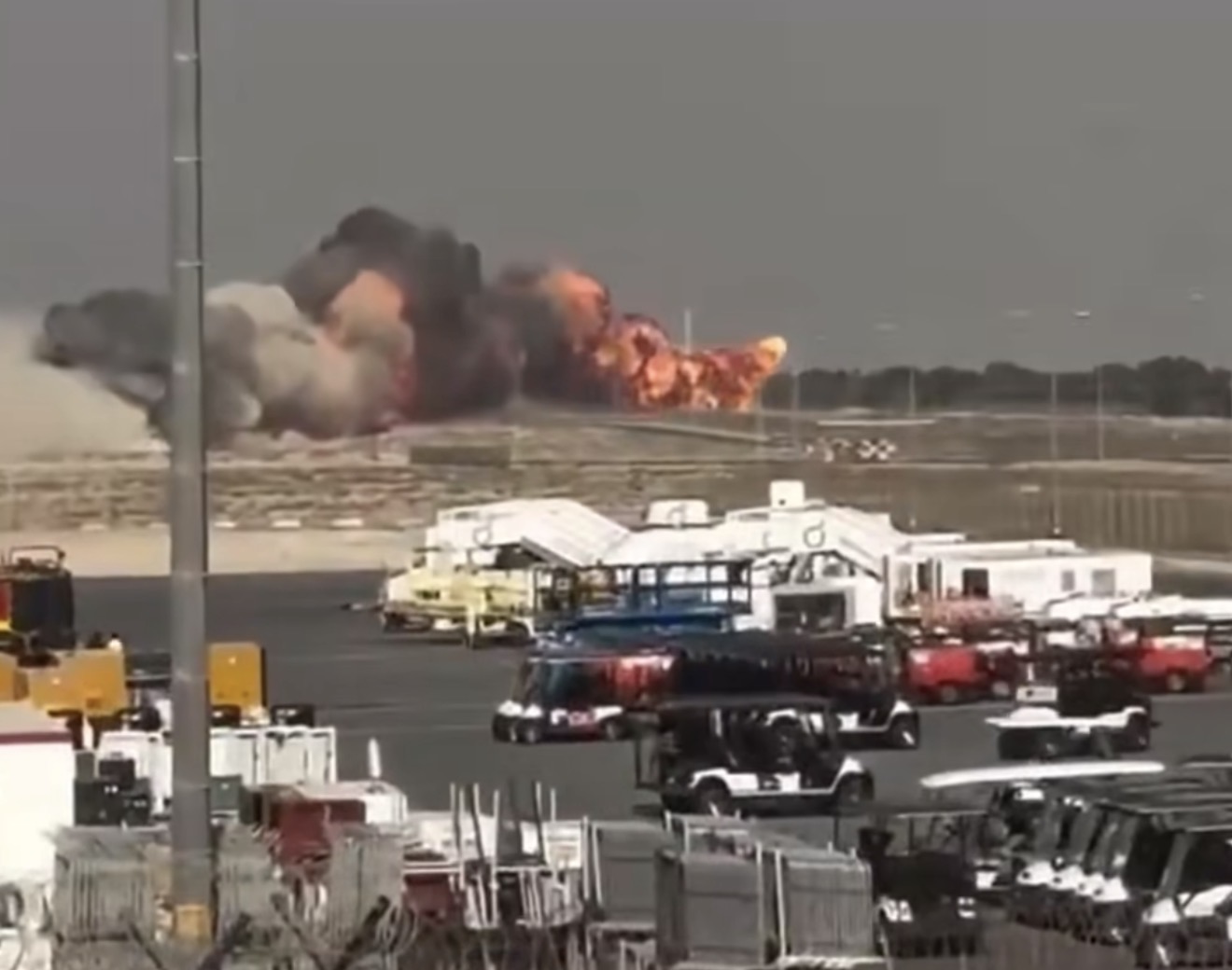 Eyewitnesses reported that the aircraft lost control while flying at low altitude over Al Maktoum International Airport, before diving sharply and exploding into a fireball upon impact. Thick black smoke billowed into the sky just moments after the crash, as emergency vehicles rushed to extinguish the blaze.