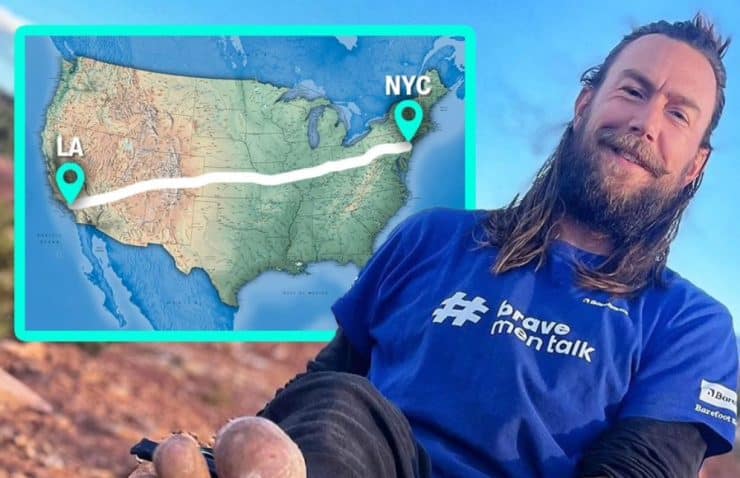 Two years later, he set a Guinness World Record for the longest barefoot journey, trekking 1,875 miles along the Australian coast. Now, he’s aiming to break his own record by walking 3,000 miles from Los Angeles to New York City, entirely barefoot.