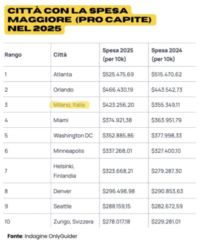 ๐ According to the latest survey conducted by OnlyGuider, a platform specialized in analyzing OF data, the Lombard capital has achieved a โsensationalโ and rather unexpected result, surpassed only by Atlanta and Orlando.