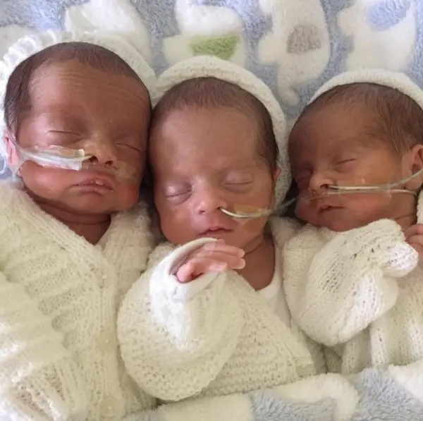 The boys were delivered by C-section at just 31 weeks. Each baby weighed between 3 and 5 pounds and required a few weeks in neonatal intensive care.