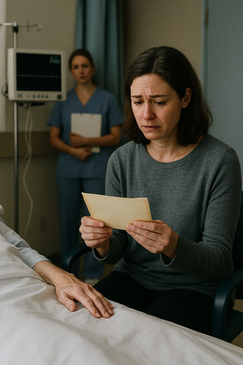 A nurse peeked into the doorway. She clutched a clipboard to her chest. Her face held that familiar blend of compassion and weariness that comes from watching too many people leave the world.