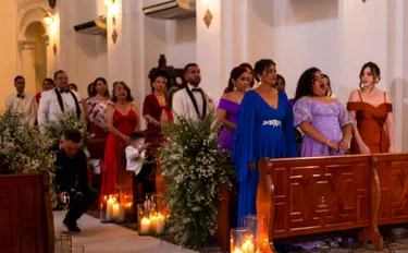 Eighty guests — close friends and family — filled the seats in pastel-colored attire, buzzing quietly with excitement.