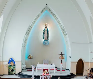 The warm spring sun streamed through the stained-glass windows of the quaint chapel, casting rainbows across the wooden pews.