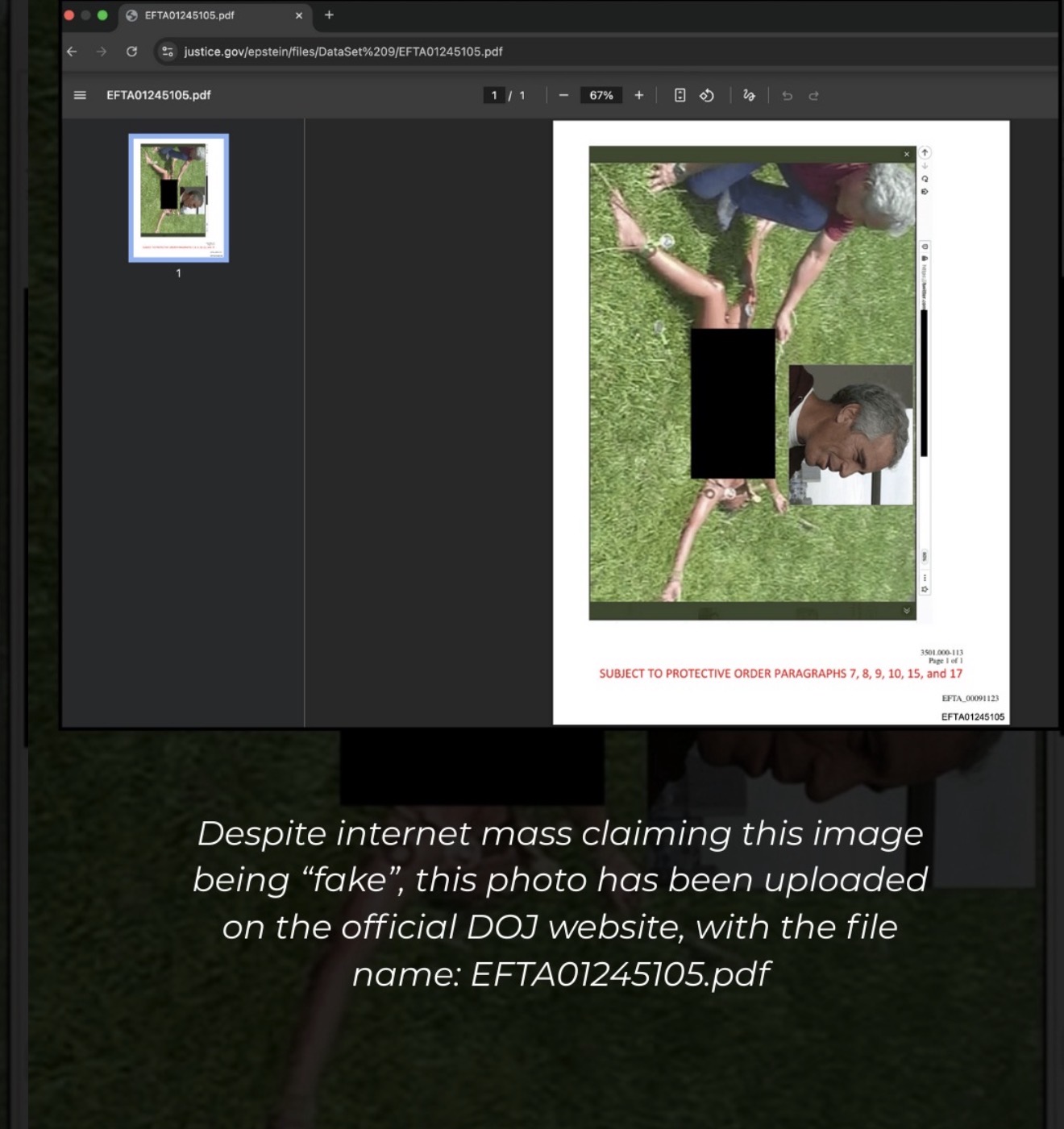 There is active discussion online in unmoderated forums where users have posted alleged links to specific PDF files and claimed they show disturbing images.