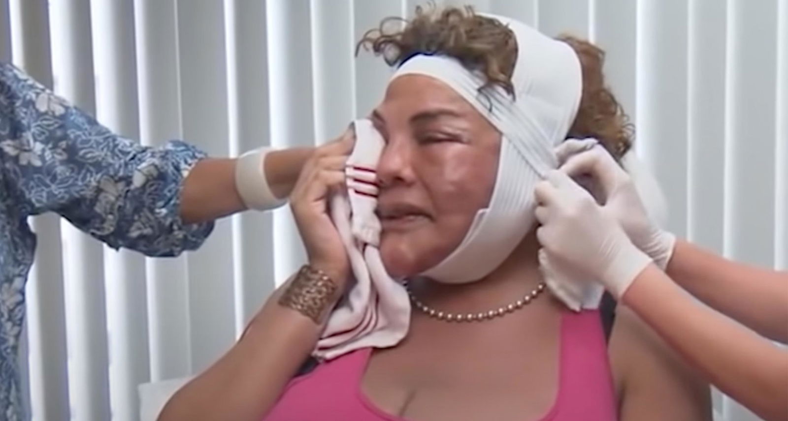 Cosmetic surgeons Dr. Terry Dubrow and Dr. Paul Nassif evaluated her case. At first, they were hesitant to operate because of the potential risks involved. The substances injected into her face made surgery extremely complex.