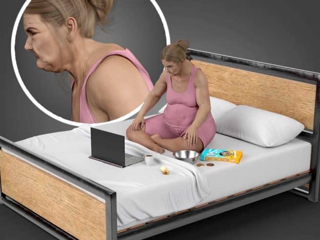 Allow me to introduce Anna, a virtual creation meticulously crafted by the diligent minds at Furniture at Work, aiming to shed light on the potential physical and mental tolls of remote work by the year 2100.