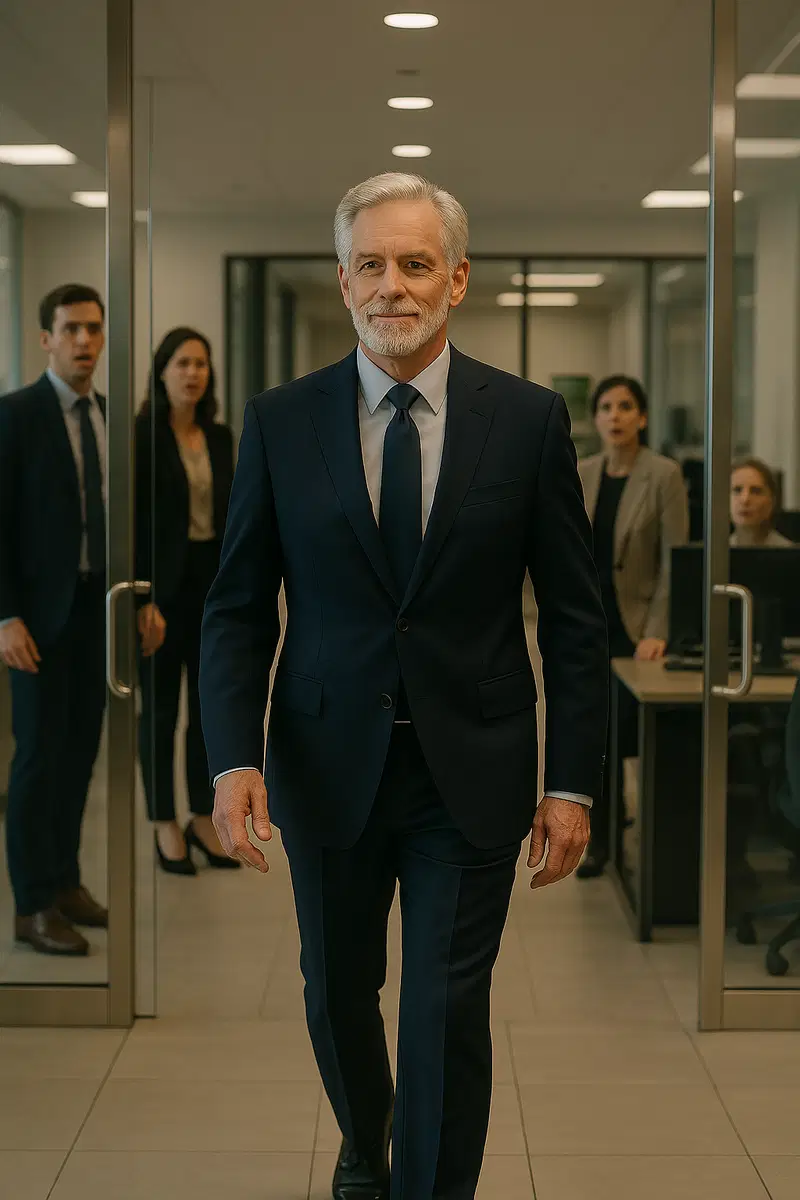 In stepped a man dressed in a sharp navy suit, polished shoes clicking across the floor, silver hair slicked back. He stood tall, composed, and radiated quiet confidence.