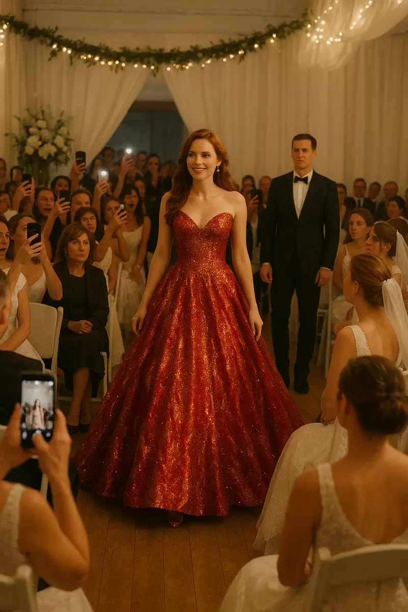 Her show-stopping dress — the one she thought would draw gasps — now looked like just another white gown in a sea of them. The reaction she anticipated never came. No admiring stares. No whispers. Just silence. She blended in.