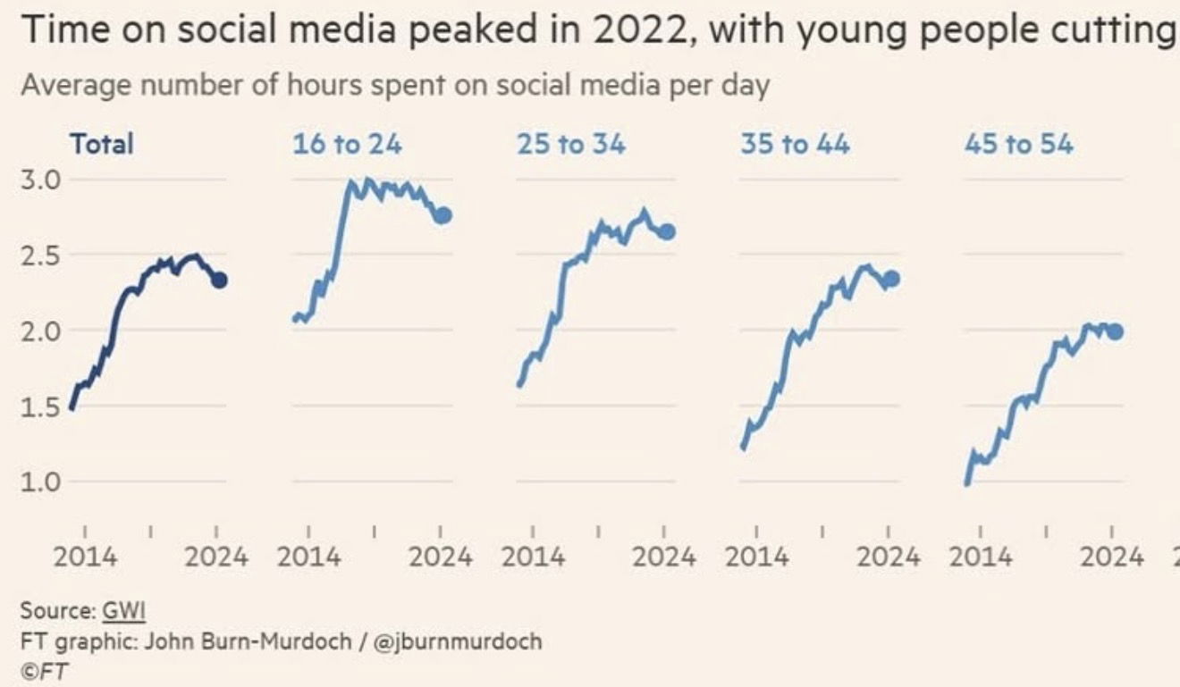 For the first time ever, global social media usage is shrinking, and the trend is being driven by younger generations. Time spent on platforms peaked in 2022, but recent data shows a marked pullback, particularly among users aged 16 to 24.