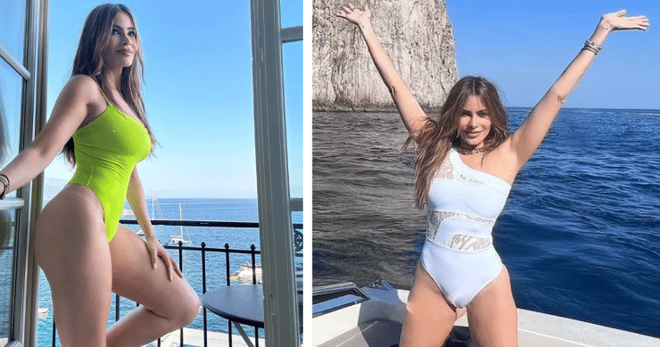 Sofía Vergara, 51 years old, doesn’t seem to have aged a day in her selfies. She was relaxing in Italy wearing a neon green swimsuit while celebrating her 30m followers on Instagram with her snaps and thanking them for their support.