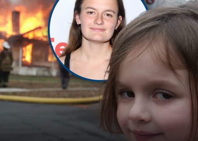 The “smiling disaster girl” sold her original photo for $500K Her father, Dave Roth, snapped a photograph of...