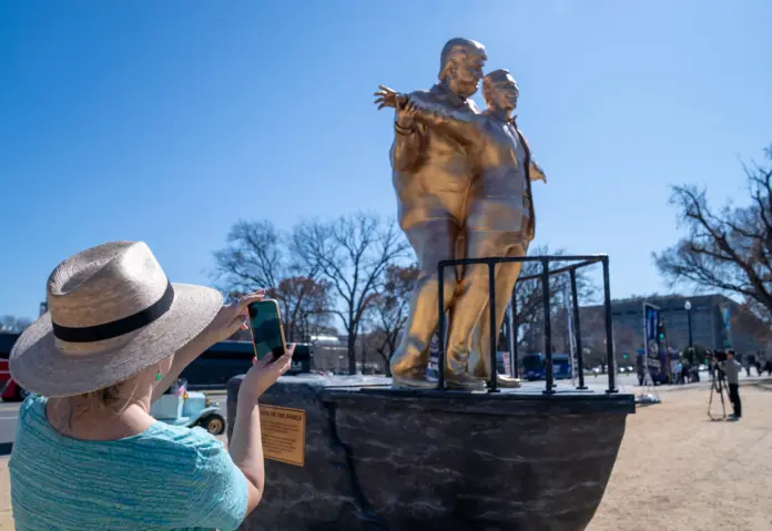 Trump and Epstein Statue Mimicking Titanic Scene Appears in Washington