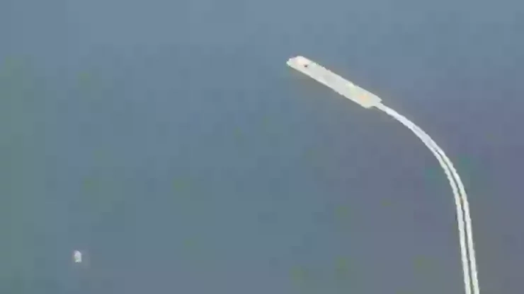 The aerial footage shows a line of vehicles cruising along a bridge suspended over water, only to seemingly vanish at a specific point. No crash, no stop—just straight-up gone. But what exactly are we looking at?