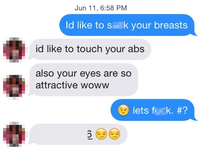 There were also messages where the sender used crude language or implied intentions that most social etiquette would call inappropriate. Yet the positive responses continued. Some women even initiated contact first, making the first move in the conversation before the sender wrote anything. This was surprising to many who follow online dating trends, because studies and surveys often show that men are more likely to send the first message on apps like Tinder.