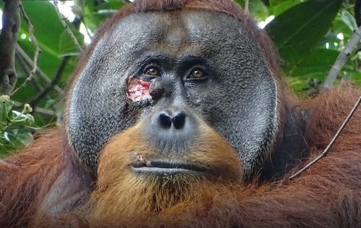 Wounded orangutan seen using plant as medicine
