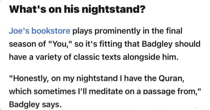 ‘YOU’ star Penn Badgley reveals he reads the Quran before bed